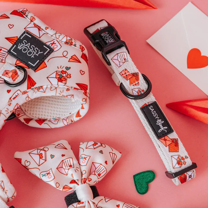 Infuse your pup's wardrobe with a dash of romance and whimsy with our Heartfelt Dog Accessories Collection. Featuring playful designs of hearts, paper airplanes, and love letters, this charming range is perfect for pet parents who want to show their furry friends some extra love.